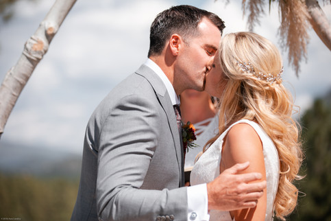 However when I think of backyard weddings, I never picture what I saw at the top of that hill (much fancier than what we had put together for our backyard wedding haha). They had tied two aspen trunks together in a triangle as their arch, with flowers attached off center at the top and all around the base. The flowers by Floral Expressions in Bayfield were absolutely amazing! They really brought the whole look together.