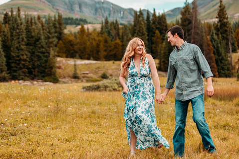 After we frolicked in the mountain for a bit, Sarah and Nate were willing to go on a little adventure with me to cascade falls! I love this spot because it is relatively easy to get to and it feels so magically beautiful. Really all the locations we went to on this adventure engagement session were magically beautiful and all easy to reach from Durango. I just can't believe we are so lucky to have these amazing views and locations so accessible, practically in our back yard!